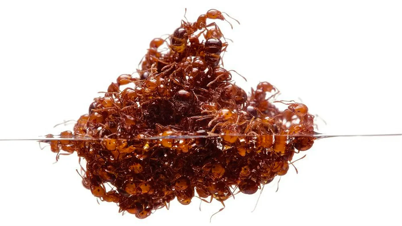 When water threatens a colony, Fire Ants starting forming buoyant clumps of ants capable of ‘sailing’ whatever flood or water mass came their way. But these clumps or not just ants randomly holding on to each other, hoping for some collective buoyancy and the off chance that most will remain above the waterline. Instead, it’s a carefully orchestrated collective movement that traps air, defends the most important colony members and even rotate individuals through the raft to make sure no one stays under water for too long.